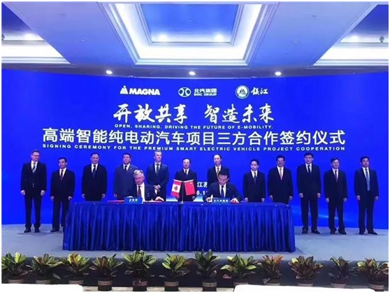 30 北汽新能源与麦格纳拟成立合资公司 打造高端智能纯电动汽车研发制造共享中心 2018-7-126月18日,北京新能源汽车股份有限公司(简称“北汽新能源”)与麦格纳在江苏南京签订合作协议条款清单,双方宣布拟成立合资公司,致力于打造对外开放共享的高端智能纯电动汽车研发与制造中心。江苏省和镇江市有关领导、北汽集团董事长徐和谊、麦格纳国际首席执行官唐·沃克(Mr. Don Walker)等各方代表出席了签字仪式。 根据条款清单内容,双方将共同设立合资公司,开展高端智能纯电动车共享平台的...
